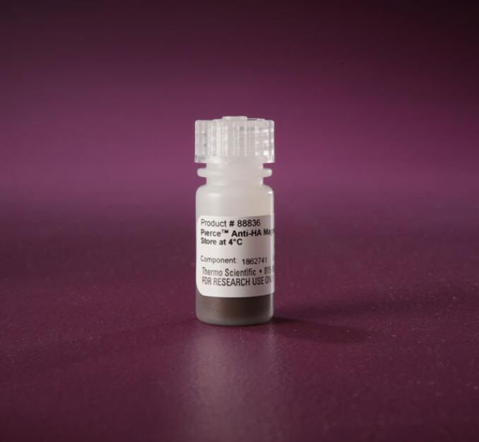Thermo Scientific Pierce 抗 HA 磁珠是用于借助手动或自动磁性分离器对细菌或哺乳动物细胞或体外系统中表达的重组 HA 标签蛋白进行免疫沉淀的亲和微粒。 抗 HA 磁珠的特点: •特异性—高度特异性抗 HA 单克隆抗体(克隆 2-2.2.14)可实现高得率和高纯度的免疫沉淀 •便利快速—产品说明提供了一个易于遵循的优化方案,可在大约一小时内完成免疫沉淀 •低非特异性结合—稳定、预封闭的磁珠以及特异性抗体尽可能减少了 HA 标签 IP 或 co-IP 实验的脱靶结合 •通用—微珠兼容手动和自动工作流程(例如,Thermo Scientific KingFisher 仪器) 该封闭的磁珠表面包被着抗 HA 抗体,一种高度特异性小鼠 IgG1 单克隆抗体,可识别来源于人流感血凝素 (HA) 蛋白 的 HA 抗原决定簇标签 (YPYDVPDYA)。Pierce 抗 HA 磁珠可与磁力架配合用于手动操作,亦可用于自动化平台,如 Thermo Scientific KingFisher 仪器,以用于高通量工作流程。 规格: 产品详情: Pierce 抗 HA 磁珠很便利,可用于重组 HA 标签蛋白的免疫沉淀 (IP) 以及其相互作用蛋白的免疫共沉淀 (co-IP)。将微珠与含有 HA 标签蛋白的细胞裂解物一起孵育,并捕获融合蛋白。随后,洗涤微珠,然后使用 0.1 M 甘氨酸(pH 值 2.0)、50 mM NaOH 或 SDS-PAGE 样品缓冲液洗脱靶蛋白。如果需要更温和的洗脱条件,可使用 2 mg/mL Pierce HA 肽。针对上述每个条件对方案进行了优化。抗 HA 抗体可用于通过 Western 印迹分析检测 HA 标签蛋白。 |