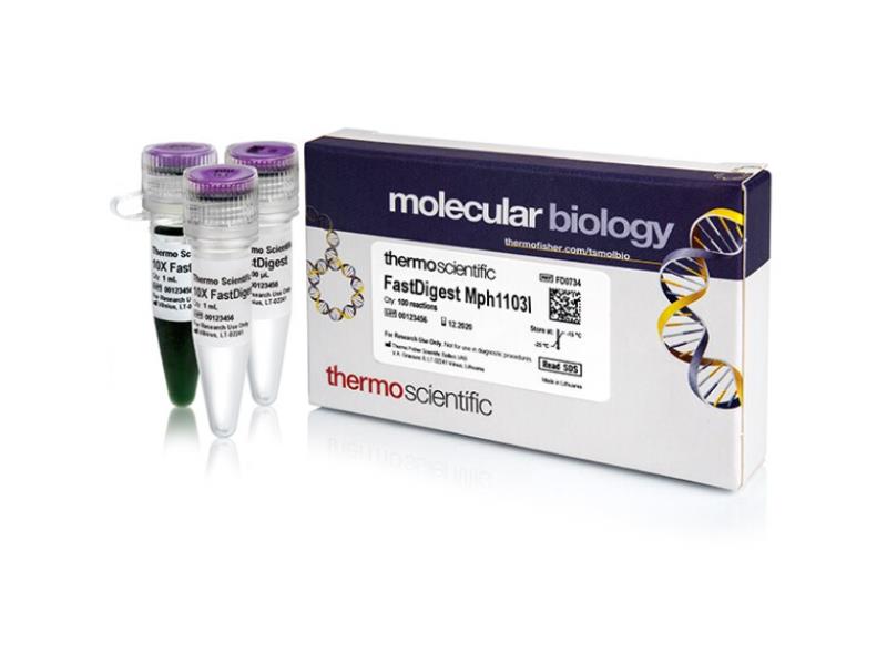 Thermo Scientific FastDigest Mph1103I 限制性内切酶可识别 ATGCA^T 位点,并使用通用 FastDigest 缓冲液于 37°C 下在 5–15 分钟的切割效果最佳。同裂酶:NsiI、EcoT22I、Zsp2I。 Thermo Scientific FastDigest Mph1103I 是一系列高端快速限制性内切酶之一,这些酶在通用 FastDigest 缓冲液和 FastDigest 绿色反应缓冲液中均具有 100% 活性。 通用缓冲液可在 5–15 分钟内快速完成 DNA 单酶切、双酶切或多酶切,无需更换缓冲液或后续 DNA 纯化步骤。有关该酶和其他 FastDigest 限制性内切酶的酶活性、热灭活和孵育时间的表格,请参见 FastDigest 酶的反应条件。DNA 修饰酶(如 Klenow 片段、T4 DNA 连接酶、碱性磷酸酶和 T4 DNA 聚合酶)在 FastDigest 缓冲液中均具有 100% 活性。因此,在下游应用中使用的酶可直接添加至 FastDigest 反应混合物中。 为了方便起见,FastDigest 绿色缓冲液包括用于直接将酶切反应产品上样至凝胶的 1 种密度试剂和 2 种示踪染料。 较短的孵育时间和较优的通用型 FastDigest 缓冲液组成消除了星活性效应。 特点 •所有 FastDigest 酶在通用型缓冲液中的 100% 活性 •与下游应用的 100% 缓冲液兼容性 • 5–15 分钟内即可完成酶切 •直接上样至凝胶 •无星活性 •可提供 176 种 FastDigest 酶 应用 •分子克隆 •限制位点作图 •基因分型 •Southern 印迹 •限制性片段长度多态性 (RFLP) • SNP 分析 备注:FastDigest 绿色缓冲液在 DNA 酶切反应和下游应用中具有和无色 FastDigest 缓冲液一样的高性能。对于需要通过荧光激发进行产物分析的应用(例如在紫外光下测定浓度),则建议使用无色 FastDigest 缓冲液。 有关甲基化敏感性的信息,请参阅产品规格。 |