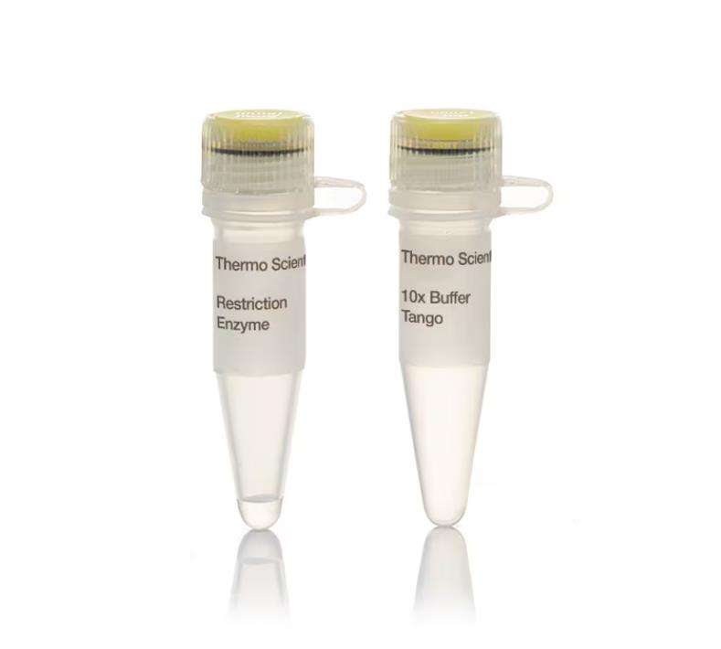 Thermo Scientific Esp3I (BsmBI) 限制性内切酶可识别 CGTCTC(1/5)^ 位点,于 37°C 下在 Tango (+DTT) 缓冲液中的切割效果较好。参见限制性内切酶的反应条件表格,了解该酶和其他限制性内切酶的酶活性、双重酶切条件和热灭活。注:也可作为 FastDigest 酶 用于快速 DNA 酶切。同裂酶:BsmBI。 Thermo Scientific 常规限制性核酸内切酶是一大批高品质限制性内切酶,经优化后在五缓冲液系统的一种缓冲液中发挥作用。此外还提供通用 Tango 缓冲液,便于进行双酶切。所有酶在推荐的缓冲液和反应条件下均表现出 100% 活性。为确保一致的性能,Thermo Scientific 限制性内切酶反应缓冲液包含预混合 BSA,其可增强多种酶的稳定性,并与送入 DNA 制剂中的污染物相结合。 特点 • 卓越的质量—严格的质量控制和行业领先的生产工艺 • 便利的颜色编码的五缓冲液系统 • 包括用于双酶切的通用型 Tango 缓冲液 • 在反应缓冲液中预混合 BSA • 多种限制性核酸内切酶特异性可供选择 应用 • 分子克隆 • 限制位点作图 • 基因分型 • Southern 印迹 • 限制性片段长度多态性 (RFLP) • SNP 注:该酶需要 DTT。应向反应缓冲液中加入新鲜制备的 DTT。Esp3I 可以切割其识别位点的下游,并且可以生成任何所需的 4 碱基 5'-突出端。该特点可用于 PCR 产物克隆。有关甲基化敏感性,请参阅产品规格。